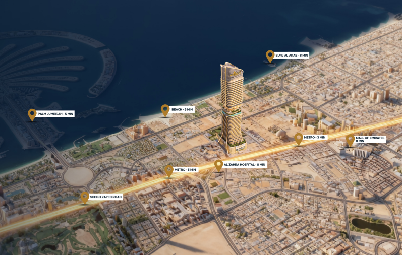 Positioned on Sheikh Zayed Road, Dubai’s most prestigious business corridor, Shahrukhz by Danube offers a strategic address ideal for companies and investors. The location provides excellent visibility, strong corporate presence, and direct access to major commercial districts.